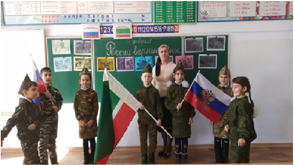 1-е классы«России верные сыны». На этих классных часах учащиеся узнали много новых интересных фактов о войне, прониклись духом патриотизма и любовью к своей Родине. Они получили уроки сострадания к ветеранам, живущим на территории нашей республики, ведь их с каждым годом становится все меньше, а мы в неоплатном долгу перед ними.