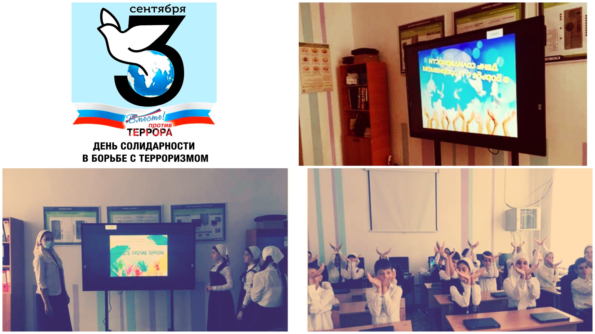 03.09.2020 прошел классный час «Терроризм-зло против человечества». В ходе мероприятия учащиеся узнали об истории возникновения терроризма и о наиболее известных терактах последнего десятилетия, в том числе и о трагедии, которая произошла в сентябре 2004 года в городе Беслане. Чтобы почтить память погибших в этой страшной трагедии, участники мероприятия изготовили бумажных голубей. К мероприятию были оформлены «Правила поведения при теракте», «Памятка по знаниям правил безопасности для детей», плакат «Терорризм-ЗЛО». В ходе мероприятия проведена также дидактическая игра «Антитеррор». В завершении мероприятия Медна Моулдиевна, рассказала учащимся о правилах безопасности проведения при терактах, правилах безопасности на улице, в общественных местах, общественном транспорте.