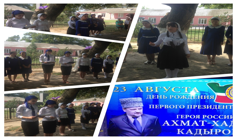 Информация о проведенных мероприятиях, посвящённых 65-й годовщине со Дня рождения Первого президента ЧР, Героя России А-Х. А. Кадырова в МБОУ «СОШ с.п. Мекен-Юрт".