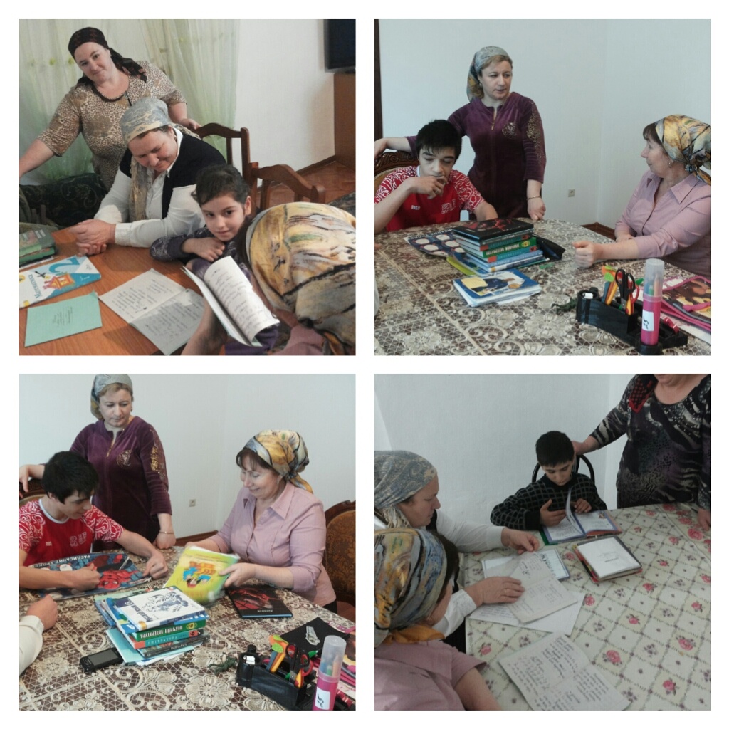 Старший специалист РУО  Абдулкадырова М.Х. вместе с учителем  МБОУ "СОШ с.п. Мекен-Юрт надтеречного муниципального района" Сулеймановой Х.И. посетила обучающихся на дому детей: Таштамирова Селима, Шахгириева Хава, Товсултанов Идрис,Гинаев Ахмед