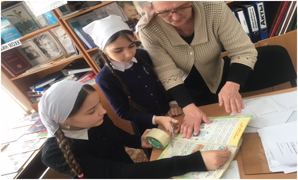 Задачи:1. Формировать у детей представление о доброте.2. Расширить знания школьников о доброте и её роли в жизни каждого человека.3. Воспитывать доброту, отзывчивость, дружелюбие, желание сделать что-то для других людей, принести им пользу.4. Поощрять стремление ребенка совершать добрые поступки.Ученицы 5 «а» класса попробовали себя в роли «докторов». Они «вылечили» много книг, подклеили странички книг, разложили книги по полкам. С большим трепетом и добротой относились к порученному делу. Данное мероприятие настолько понравилось детям, что они изъявили желание чаще приходить и помогать чинить книги. Библиотекарь Хеда Ирасхановна осталась очень довольна работой детей.