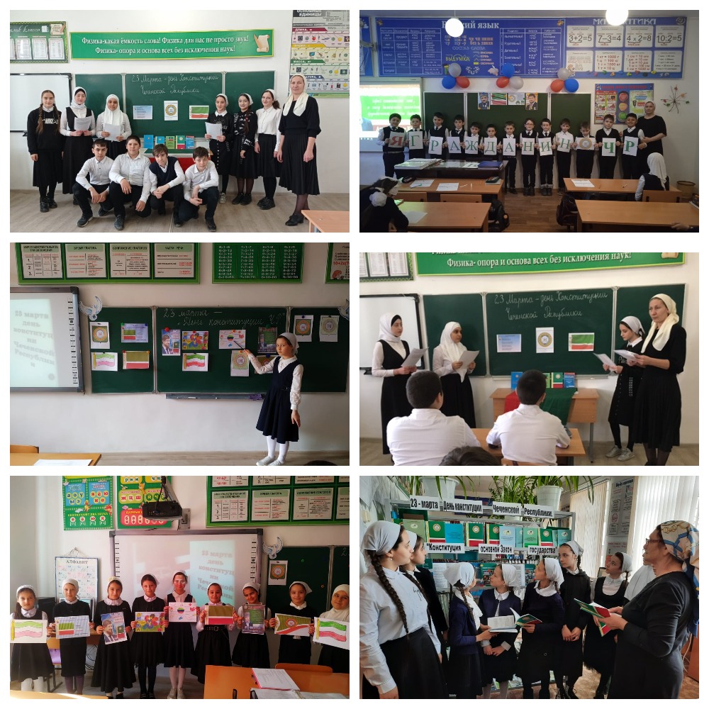 24.04.2021Уроки истории «Знай Конституцию своей Республики». Работали с текстом Конституции и решали поставленные учителем задачи. Выявленные конституционные полномочия главы республики помогают глубже понять место и роль Кадырова Р.А. в структуре высшей государственной власти Чеченской Республики. На уроках вспоминали первого президента Чеченской Республики Кадырова А-Х, о его роли в проведении референдума 23 марта 2003 года и принятии Конституции Чеченской Республики.