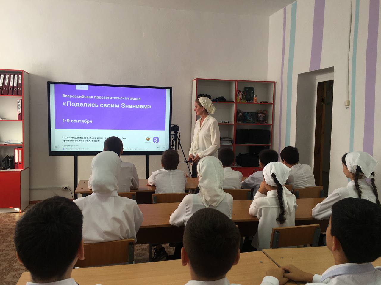13.09.20227 сентября обучающиеся нашей школы присоединились ко Всероссийской акции «Поделись своим знанием. Новые горизонты». Цель акции – рассказать обучающимся историческую правду о нашей стране, ее достижениях, перспективах развития в текущем историческом периоде, возможностях каждого человека в личностном и профессиональном развитии, а также поделиться иными полезными знаниями из различных сфер деятельности. В рамках данной акции состоялась беседа заместителя директора по УР Шахбиева Гулаз Усмановна с обучающимся 7 класса. Гулаз Усмановна, рассказала о востребованных профессиях в бизнесе, а также дала советы по освоению навыков финансовой грамотности. Гулаз Усмановна особо отметила, что никакие трудности не мешают находить возможности для развития, а иногда даже помогают.