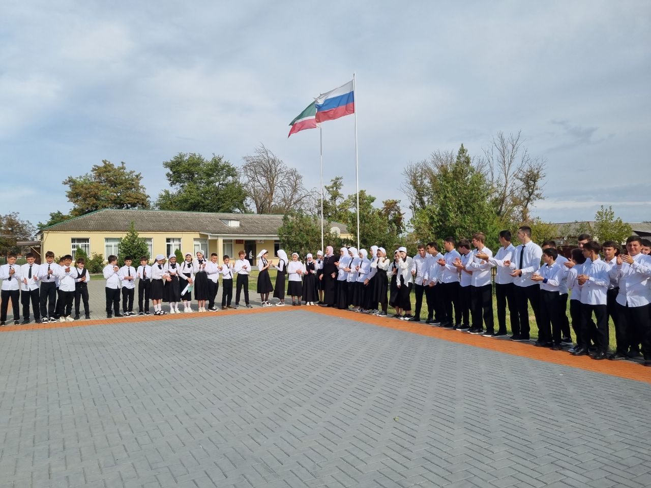 Поднятие флага Российской Федерации и Чеченской Республики
